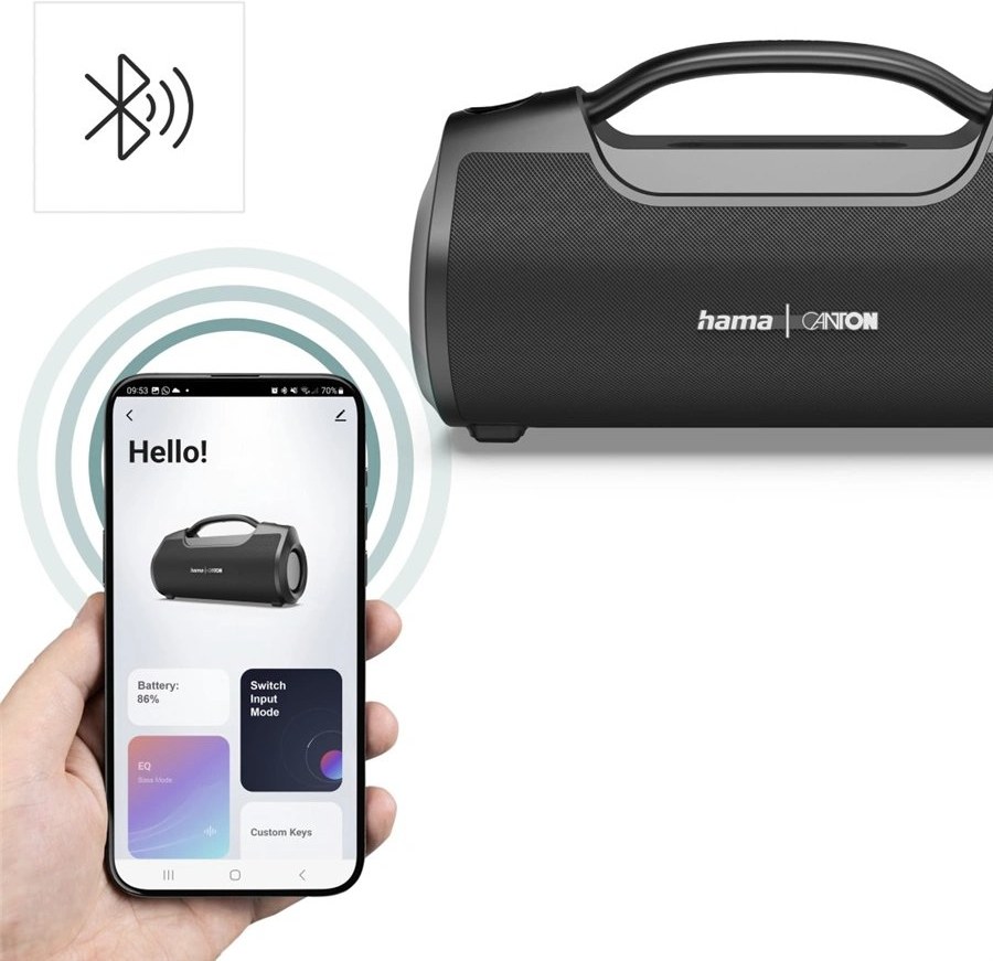 Mobilný dizajnV spolupráci so špecialistami na elektroniku a príslušenstvo v spoločnosti Hama sme vyťažili maximum z profesionálnej kvality zvuku a skombinovali sme ju s modernou technológiou. Náš prenosný reproduktor „Hama Canton Mate Pro BT“ sa vďaka svojmu kompaktnému formátu vyznačuje vynikajúcou kvalitou zvuku a vysokým komfortom cestovania – jednoducho dobrý Bluetooth zvukový systém, ktorý si môžete vziať so sebou. Vynikajúca kvalita hudby a mnohé výhody moderných Bluetooth reproduktorov sa tu dokonale spájajú.