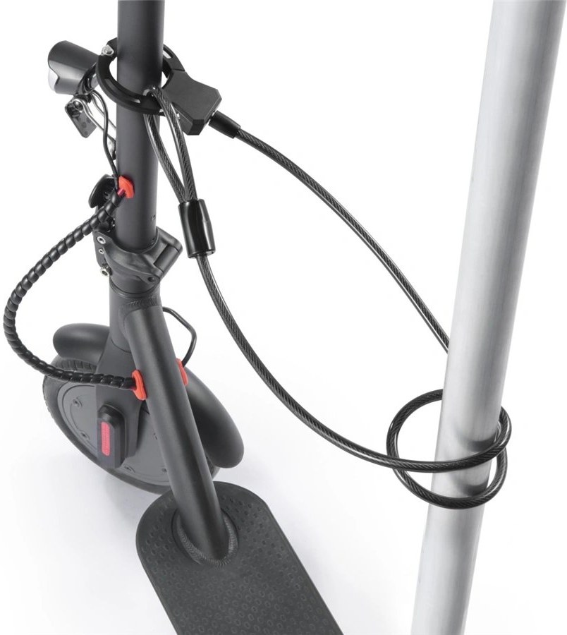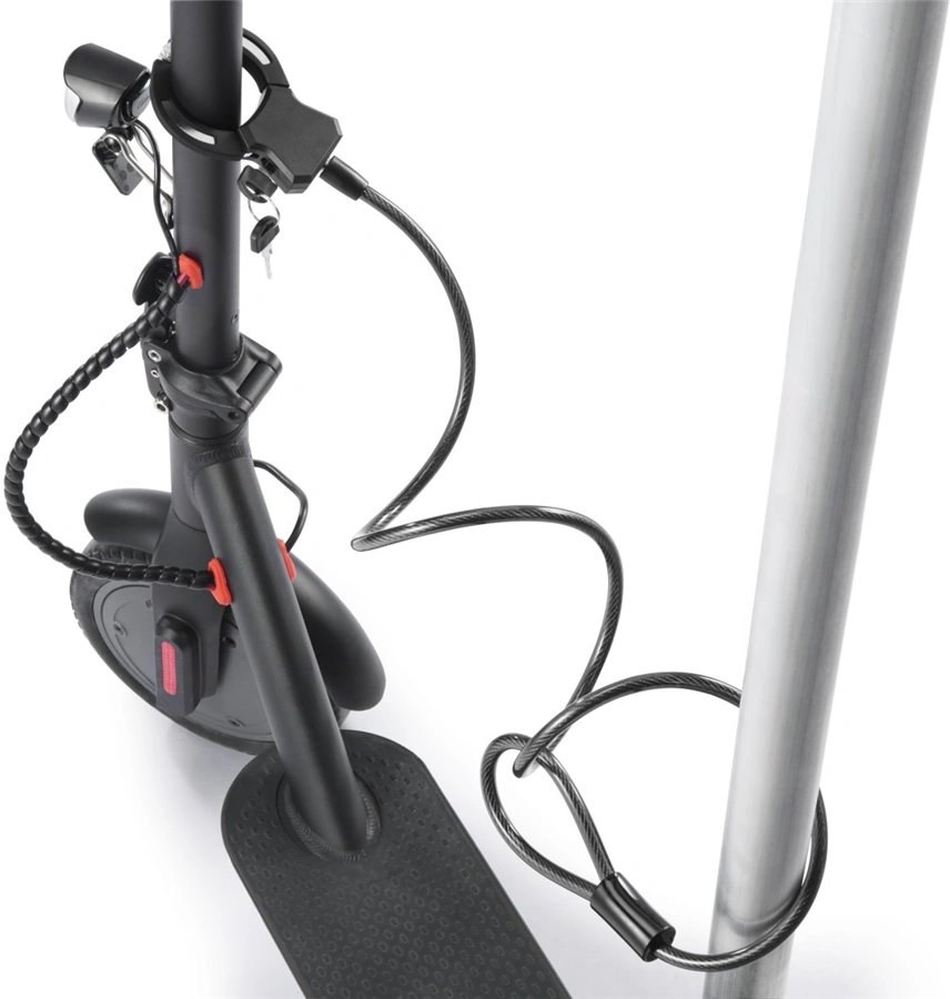 - univerzálna lanková zámka na kľúč, vhodná pre (elektro) kolobežky, kočíky, ručné vozíky alebo bicykle