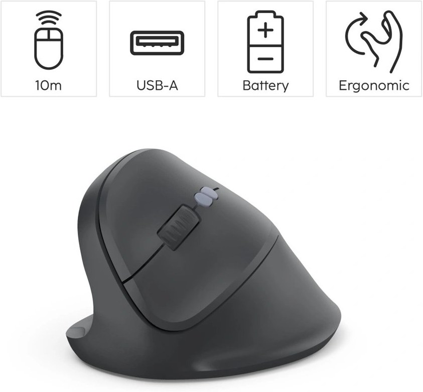- 7-tlačidlová ergonomická bezdrôtová optická myš- vertikálne prevedenie predchádza presileniu a bolesti ramien a zápästí