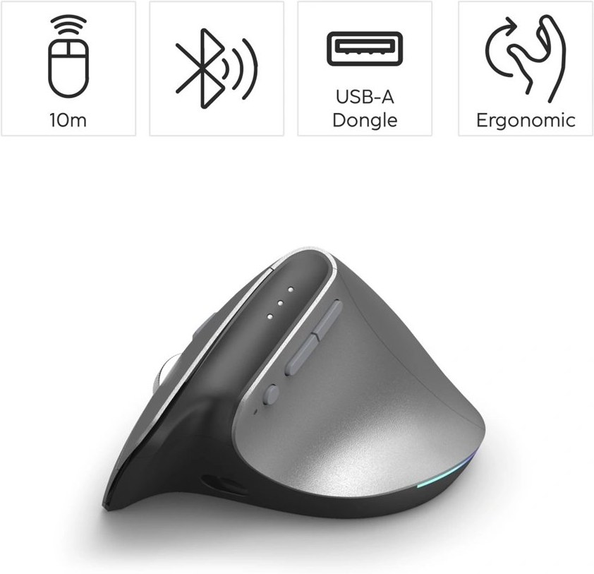 myš, kancelárska, pre pravákov, bluetooth a USB prijímač, optický senzor, nepodsvietená, 8 tlačidiel, tichý klik (silent click), max. citlivosť 2400DPI, siváZobraziť viac