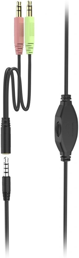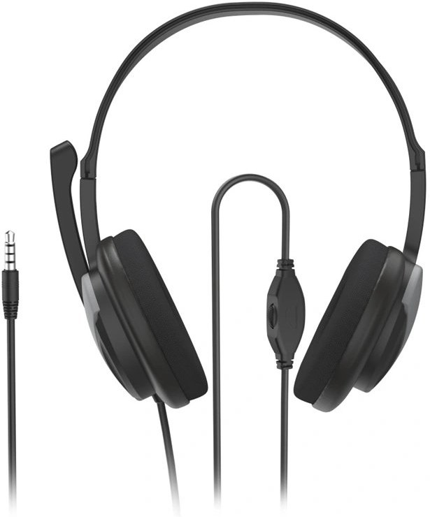 - PC Office stereo headset (On-Ear) s nastaviteľným ramenom mikrofónu a 1x jack 3,5 mm jack pripojením a Y adaptérom- Y adaptér pre jednoduché použitie s tabletom, notebookom, PC s 2x 3,5 mm jack zásuvkou