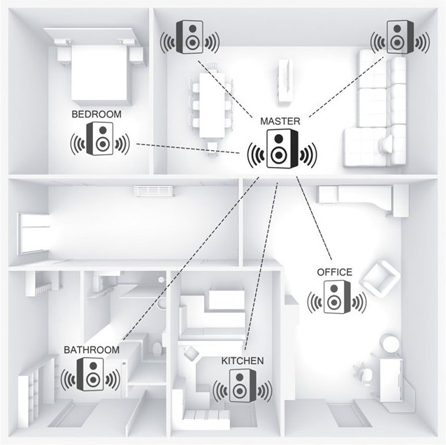 Pre použitie Multiroomu môžete pripojiť zariadenie s touto funkciou. Pri nákupe musíte dbať na logo „UNDOK“ a podporu Multiroom. Možnosť ovládania pomocou mobilnej aplikácie UNDOK pre Android/iOS (aplikáciu UNDOK si môžete bezplatne stiahnuť v Google Playstore a v Apple App Store)