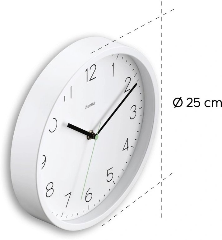 Hama Menorca, nástenné hodiny, riadené rádiovým signálom, 25 cm, biele