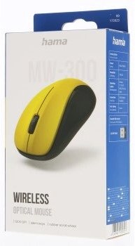 Hama MW-300 V2, bezdrôtová optická myš, tichá, žltá