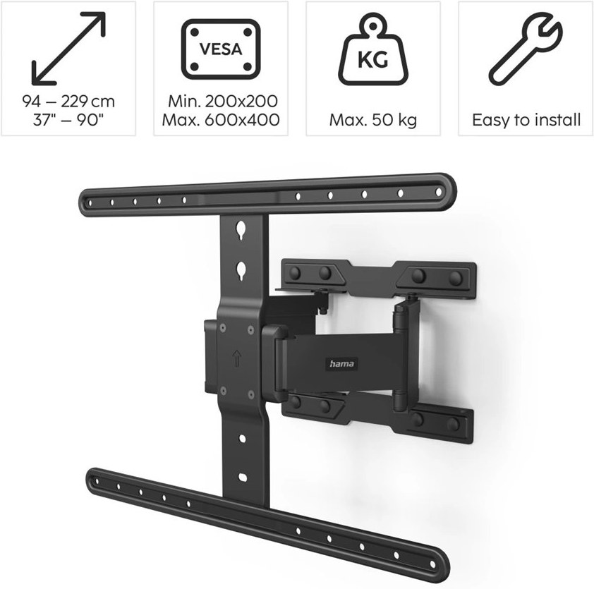 - pohyblivý držiak pre TV obrazovky s uhlopriečkou cca. 37" až 90" (94 až 229 cm)- VESA max. 600x400, nastaviteľné ramená aj pre menšiu rozteč závitov
