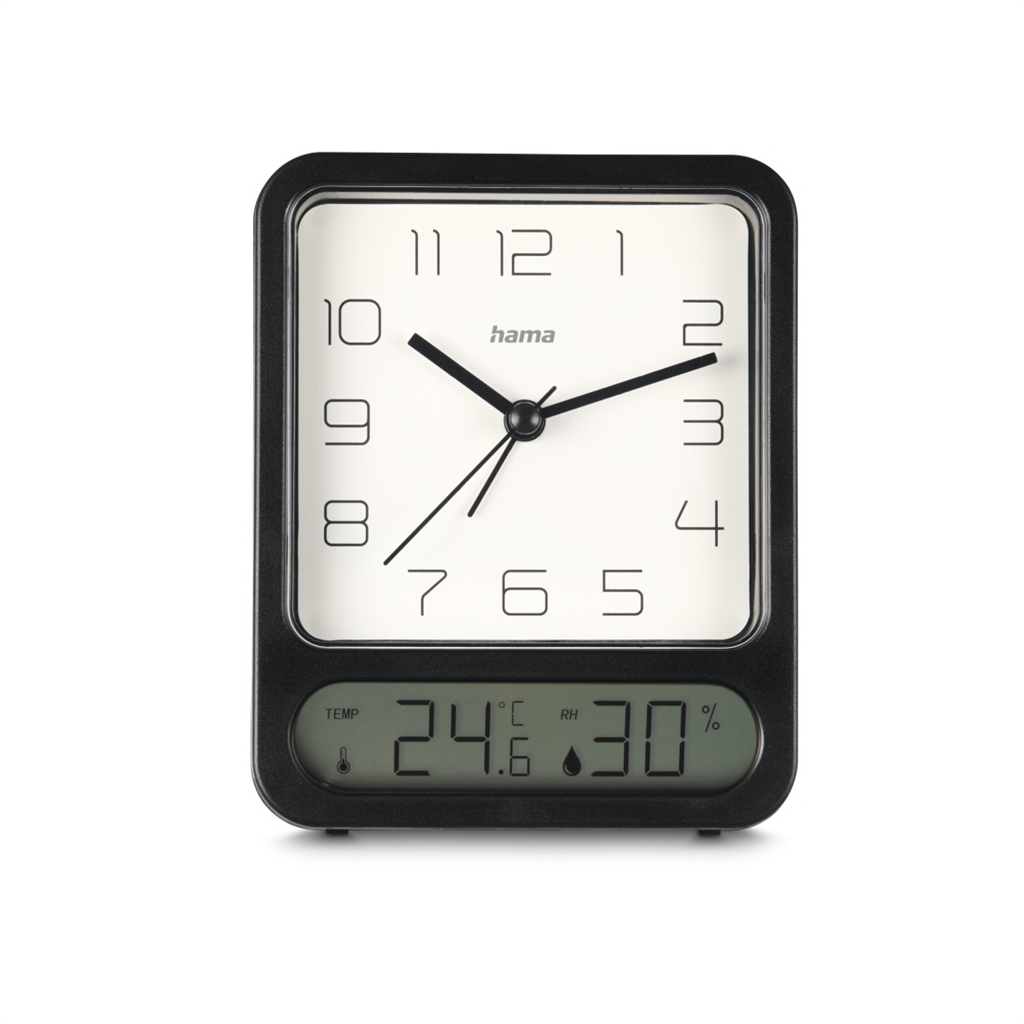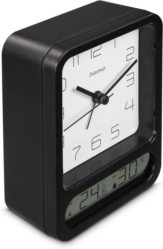 Hama Pag, budík so zobrazením teploty a vlhkosti vzduchu, tichý chod, čierny