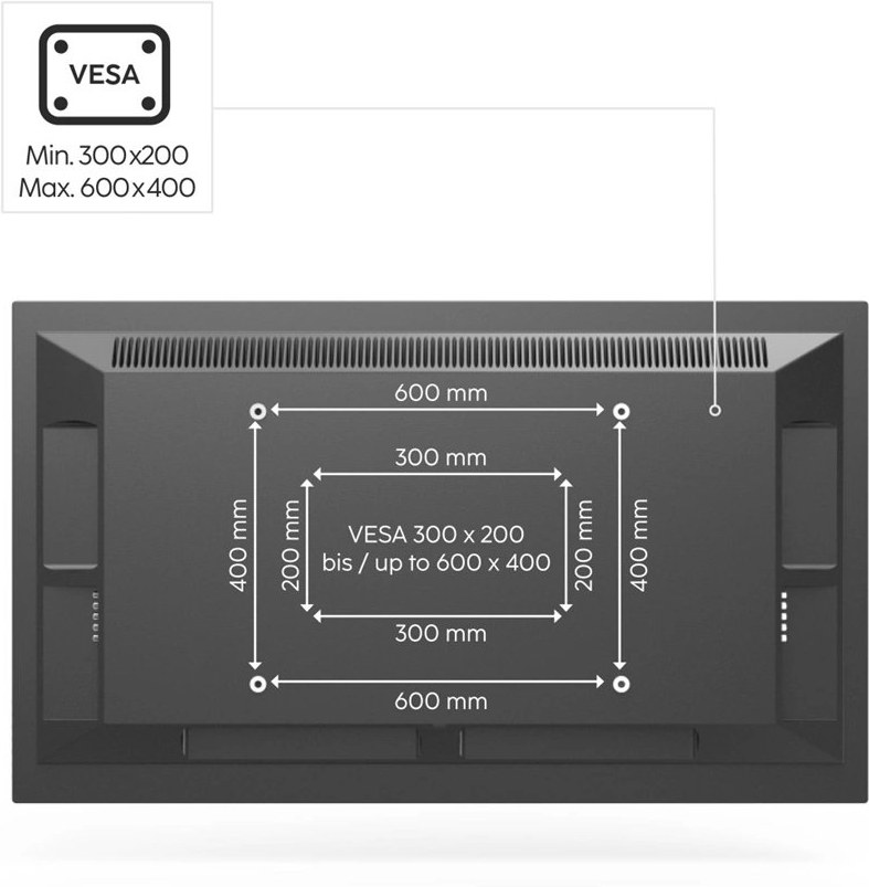 - podpora VESA (rozteč závitov): 300x200 až 600x400- doporučená uhlopriečka: 94 až 191 cm (37" až 75")
