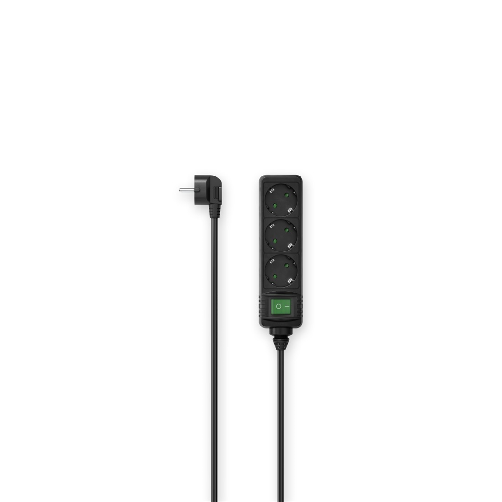 Hama predlžovací prívod s vypínačom, 3x zásuvka schuko, 3 m, čierny
