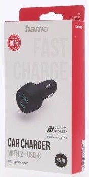 Hama rýchla USB nabíjačka do vozidla, 2x USB-C PD/QC, 45 W