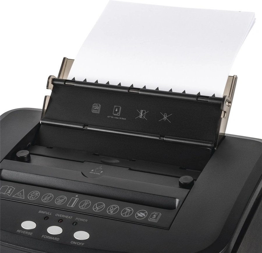 - skartovačka s krížovým micro rezom- automatický podávač až na 120 listov papiera DIN A4 (80 g/m2); jednoducho vložte požadované papiere do podávača a skartovačka sa o zvyšok postará sama