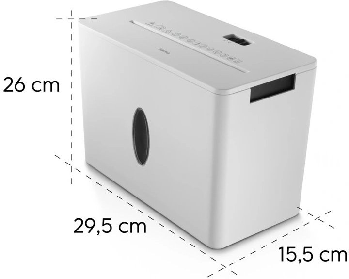- skartovačka s krížový rezom- skartovanie 4 listov papiera A4 (80 g/m2) naraz