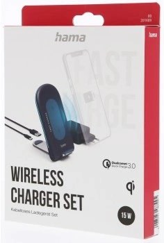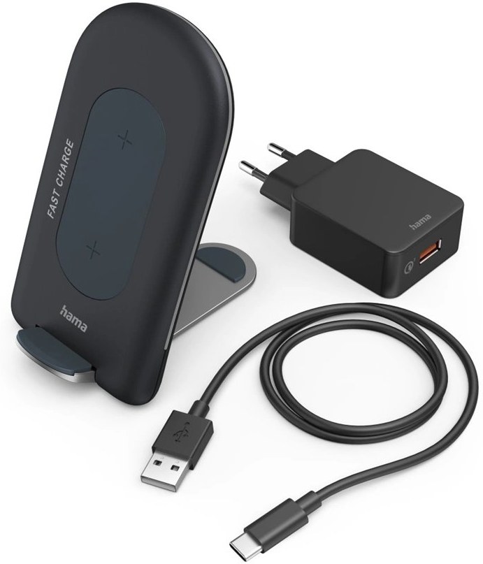 Hama set bezdrôtová nabíjačka, stojanček Qi FC15S, 15 W + rýchla sieťová nabíjačka QC 3.0