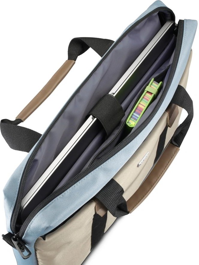 taška na notebook, 14,1", 1 vrecko, materiál polyester, šírka 39 cm, výška 31 cm, hĺbka 5 cm, hmotnosť 0,5 kg, zadný pás na kufor, farba modrá/béžováZobraziť viac