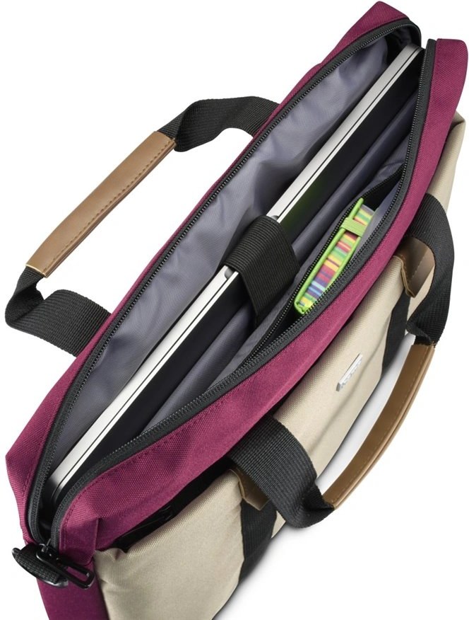 taška na notebook, 14,1", 1 vrecko, materiál polyester, šírka 39 cm, výška 31 cm, hĺbka 5 cm, hmotnosť 0,5 kg, zadný pás na kufor, farba bordová/béžováZobraziť viac