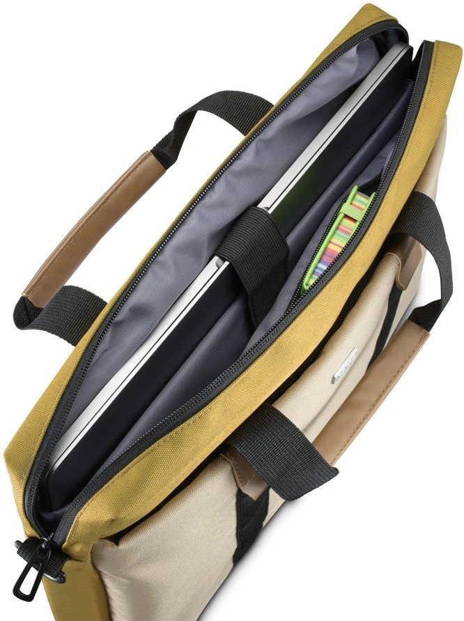 taška na notebook, 16,2", 1 vrecko, materiál polyester, šírka 42 cm, výška 32 cm, hĺbka 5 cm, hmotnosť 0,6 kg, zadný pás na kufor, farba béžová/žltáZobraziť viac