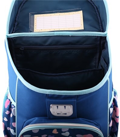 - priestranný hlavný priečinok s vnútorným vreckom, ktorý je určený pre v ťažšie predmety (napr. učebnice), zaistí sa tak rovnomerné rozloženie hmotnosti