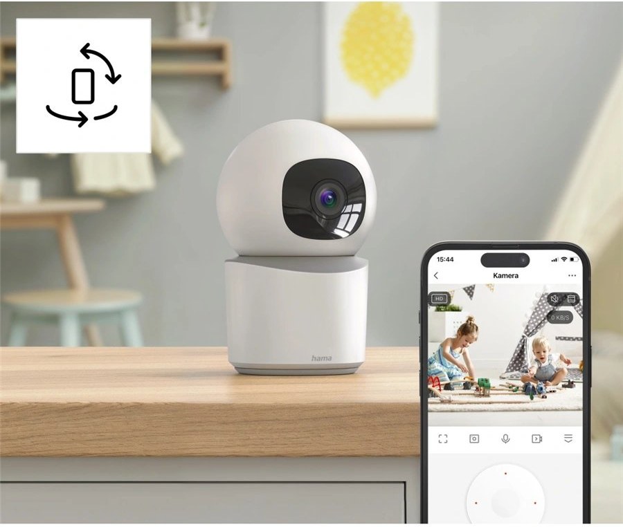 - kompaktná bezdrôtová WiFi kamera pre pohodlný vzdialený dozor vo dne aj v noci, ako bezpečnostná kamera, detská pestúnka atď.- kameru začleníte do vašej domácej WiFi siete pomocou bezplatnej aplikácie Hama Smart Home a následne ju ovládate odkiaľkoľvek pomocou mobilného telefónu alebo tabletu (aj viac užívateľov súčasne)