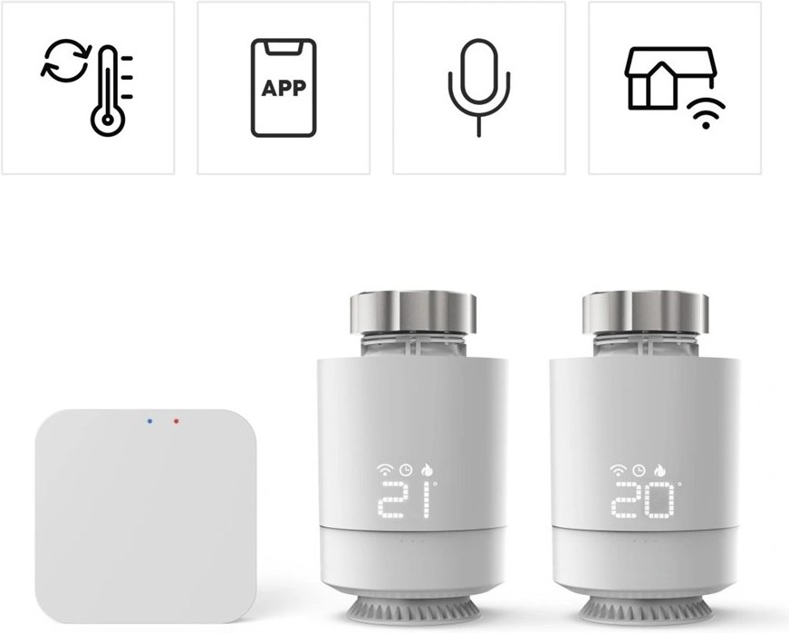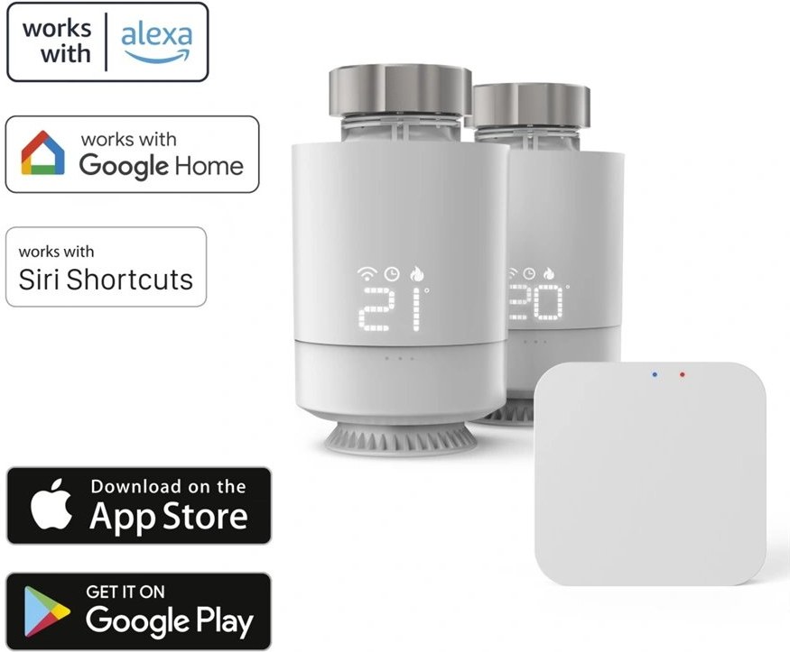 - "Starter kit" set s centrálnou riadiacou jednotkou a dvoma SMART regulačnými hlavicami- riadiaca jednotka umožňuje pripojenie ľubovoľného počtu regulačných hlavíc do domácej Wi-Fi siete a ich ovládanie cez internet