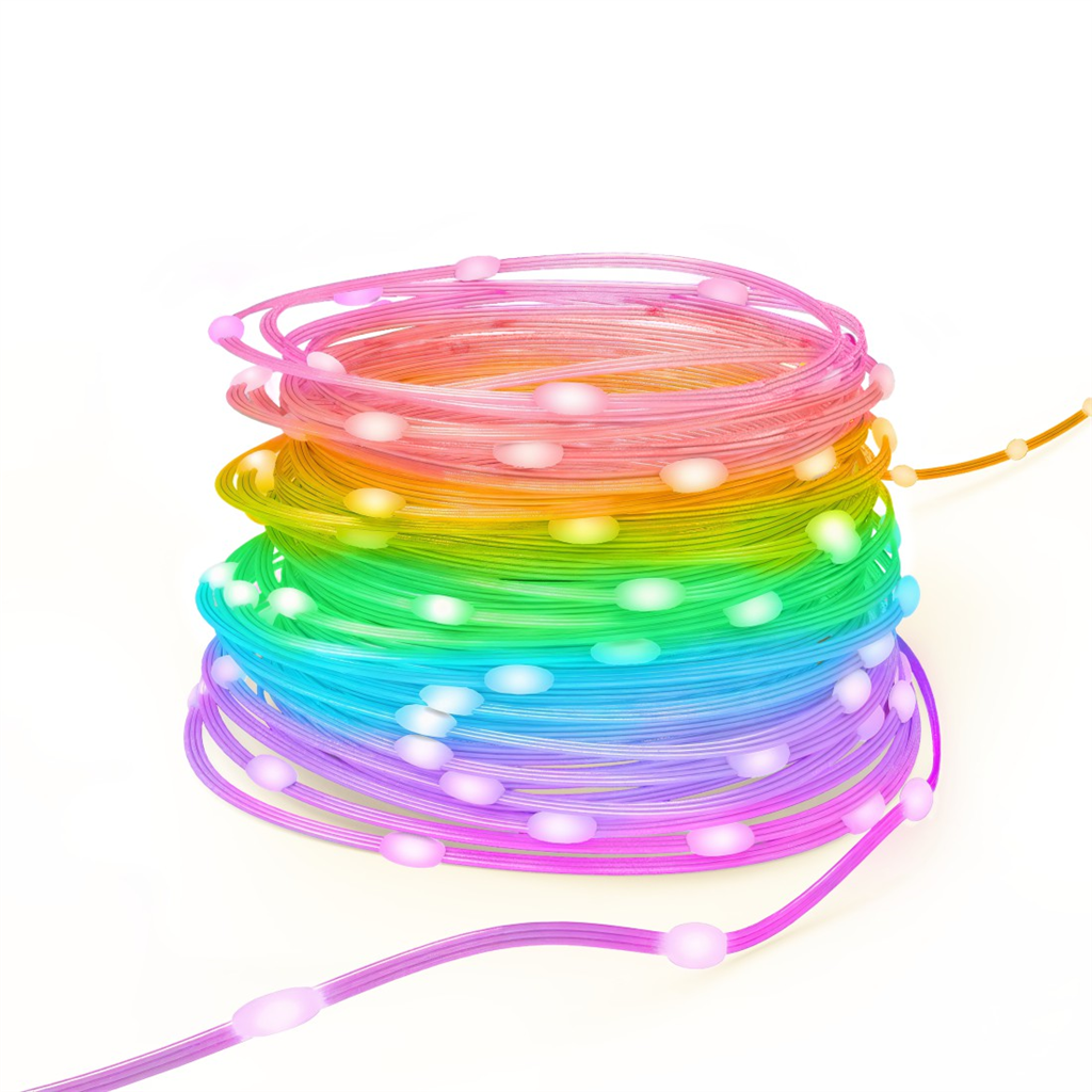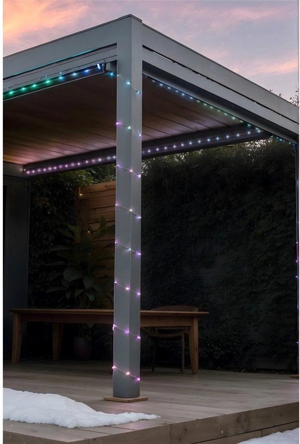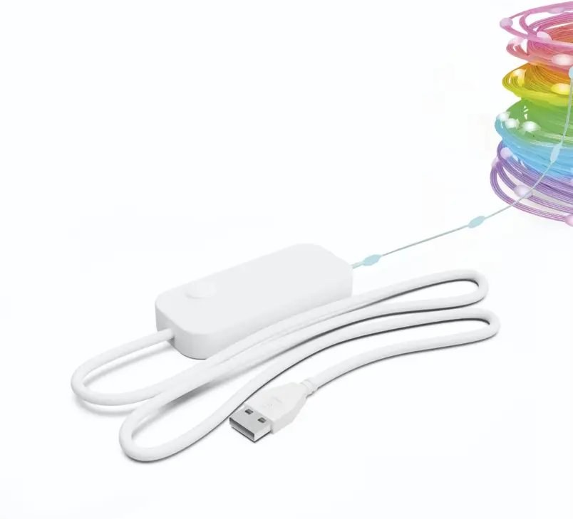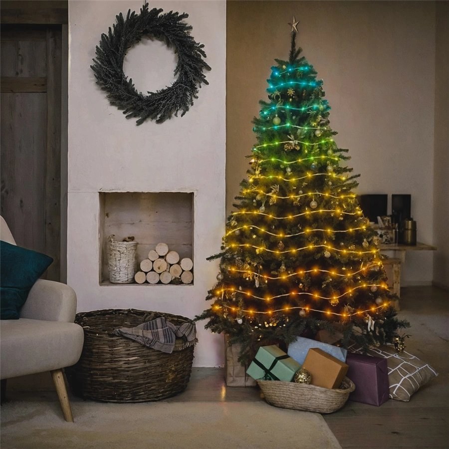 - inteligentný čip RGBIC umožňuje, aby svetelná reťaz žiarila viacerými farbami naraz; každý segment svieti inou farbou súčasne, čo vytvára úžasné a dynamické svetelné efekty s maximálnym jasom