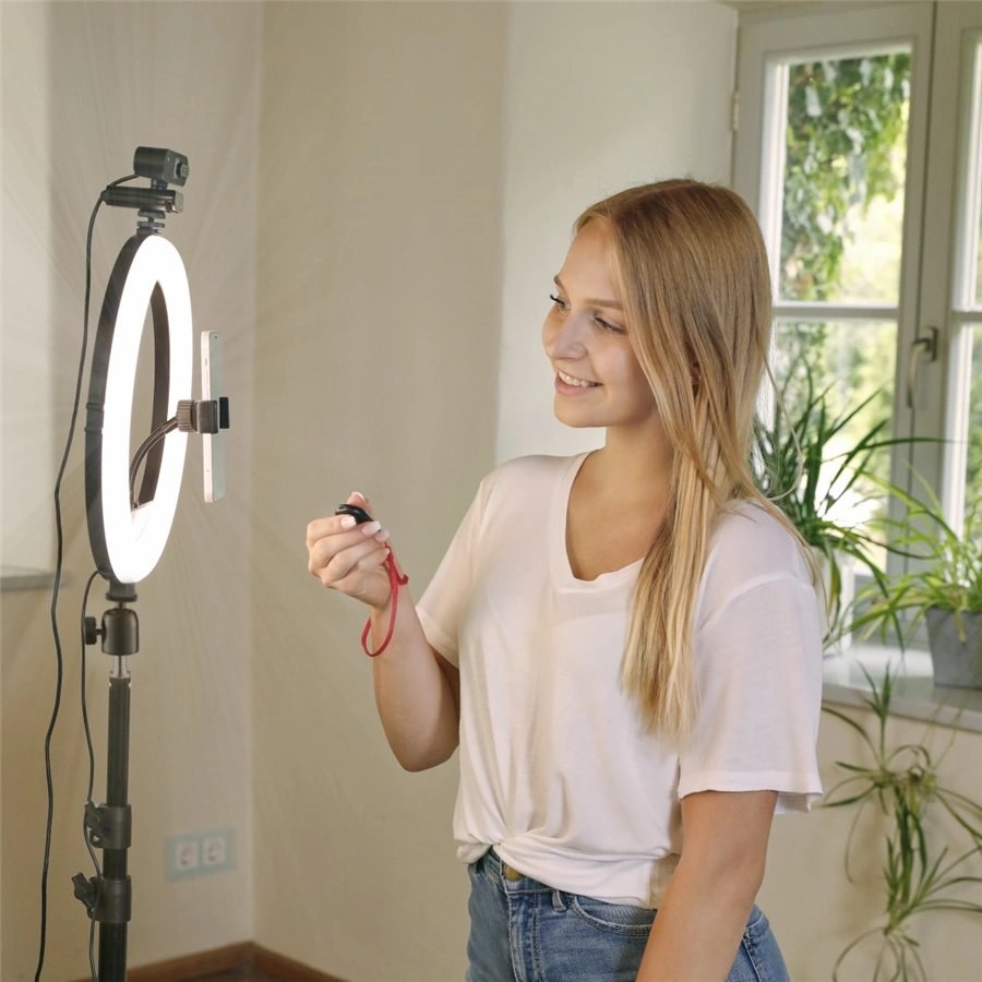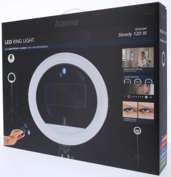 Hama SpotLight Steady 120 III, kruhové LED svetlo 12" pre smartfóny, Bluetooth spúšť, statív