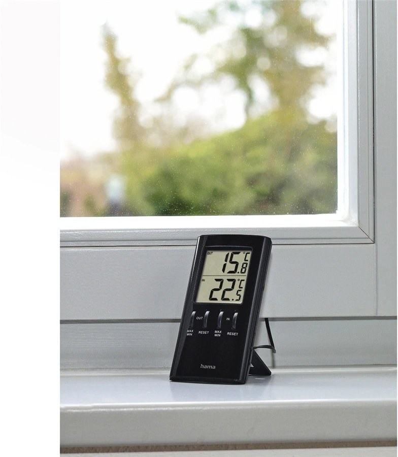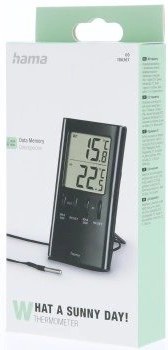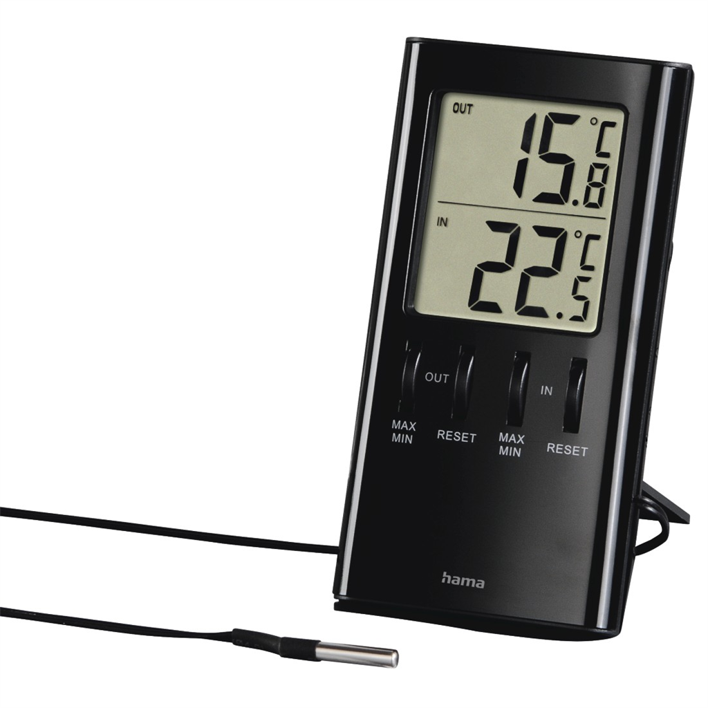 Hama T-350, digitálny teplomer, meranie vnútornej/vonkajšej teploty, senzor na kábli 150 cm, čierny