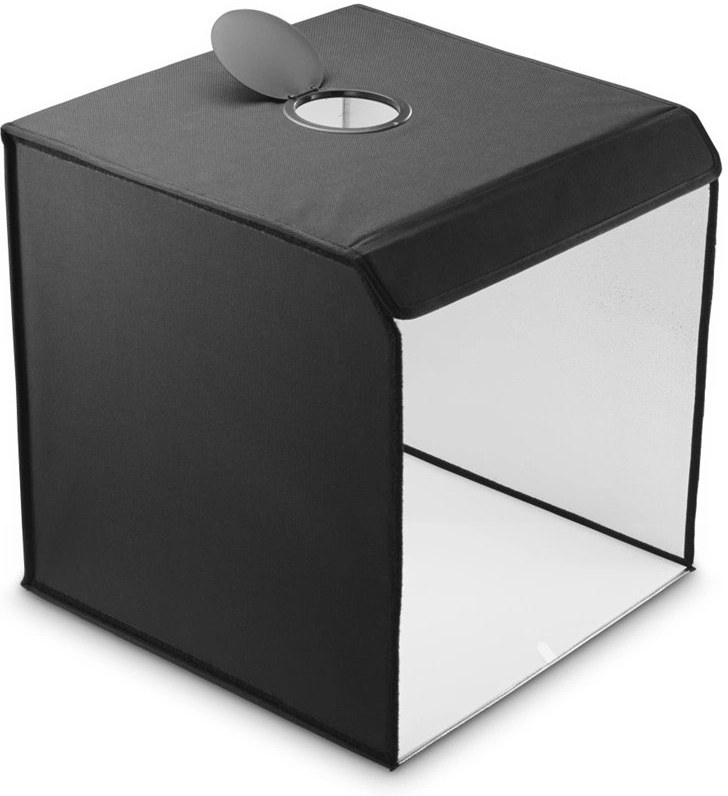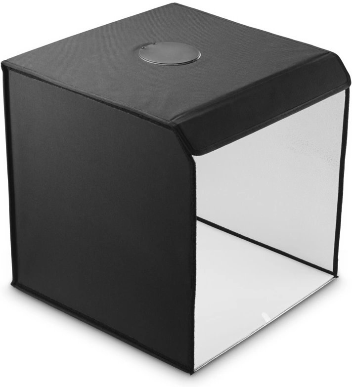 - foto kocka s príslušenstvom: kruhové LED svetlo, difúzna látka a farebné pozadia