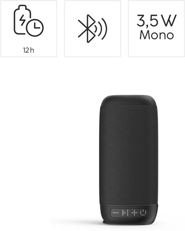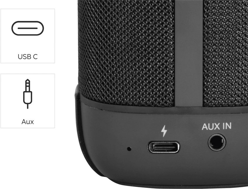 - prenosný reproduktor pre prehrávanie hudby z mobilu, tabletu alebo notebooku- výkon 3,5 W, výdrž batérie na jedno nabitie až do 12 hodín cez Bluetooth a rýchle nabitie za 3 hodiny cez USB-C