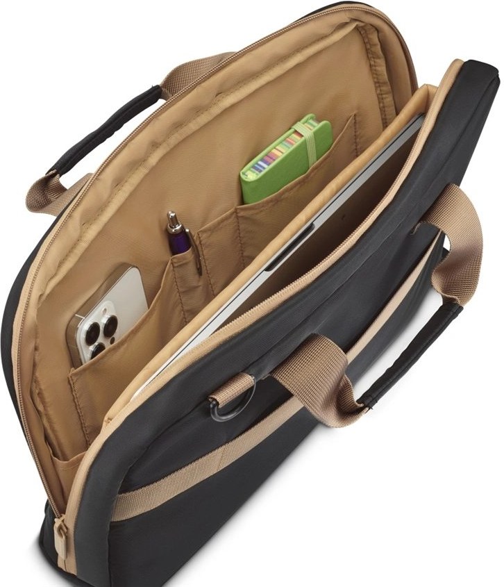 taška na notebook, 15,6", 1 vrecko, materiál polyester, šírka 44 cm, výška 32 cm, hĺbka 9 cm, hmotnosť 0,44 kg, zadný pás na kufor, farba čierna/karamelováZobraziť viac
