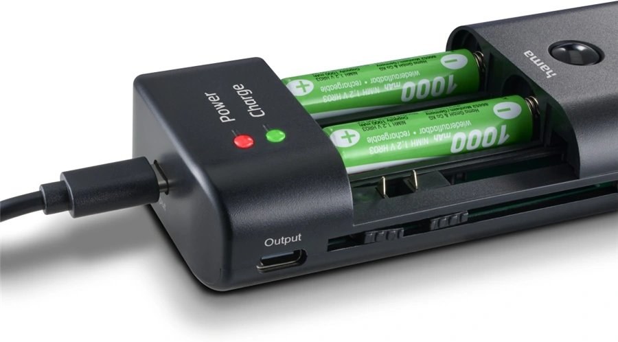 - nabíja tiež 1-2 NiMH akumulátory veľkosti AA/AAA