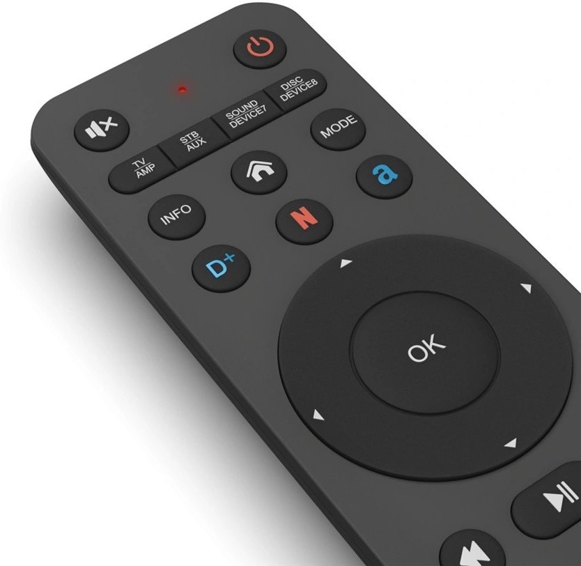 - 3 tlačidlá pre priamu voľbu streamovacích služieb (Disney+, Netflix, Amazon Prime Video)