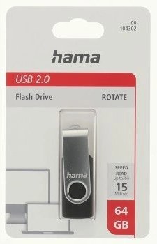 Hama USB 2.0 Flash Drive Rotate, 64 GB, 15 MB/s, čierna/strieborná