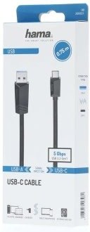 Hama USB-C 3.2 Gen1 kábel typ A-C 0,75 m