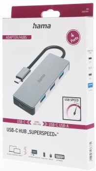 Hama USB-C-Hub, 4 porty, USB 3.2, 10 Gbit/s, hliníkový