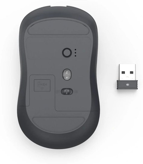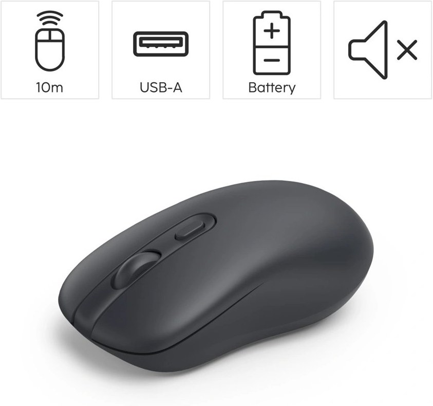 myš, kancelárska, symetrická, USB-A bezdrôtový prijímač, optický senzor, nepodsvietená, 4 tlačidlá, tichý klik (silent click), max. citlivosť 1600DPI, čiernaZobraziť viac