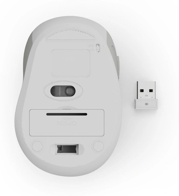 myš, kancelárska, pre pravákov, USB-A bezdrôtový prijímač, bluetooth, optický senzor, nepodsvietená, 6 tlačidiel, tichý klik (silent click), max. citlivosť 1600DPI, bielaZobraziť viac
