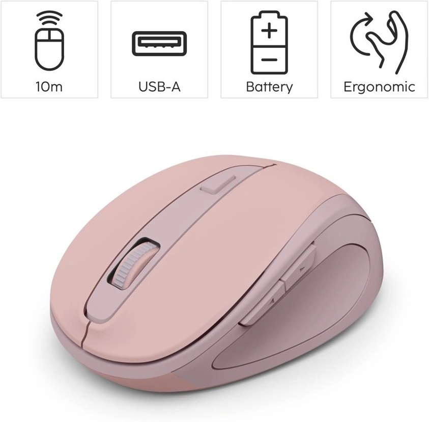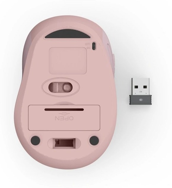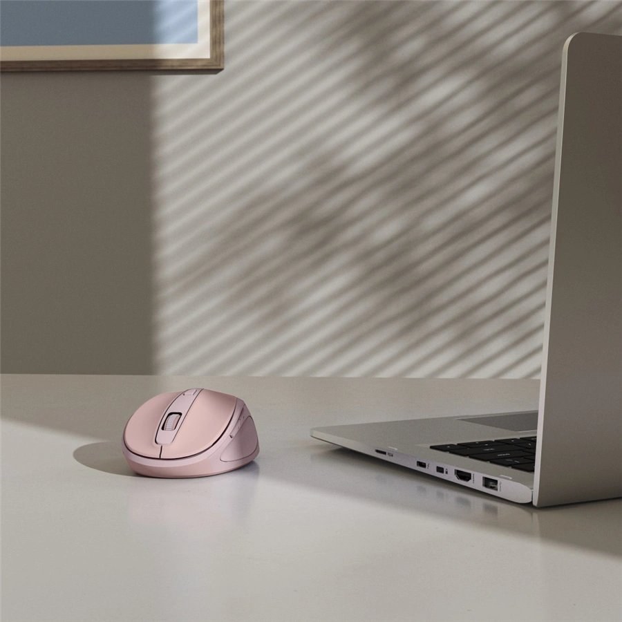 myš, kancelárska, pre pravákov, USB-A bezdrôtový prijímač, bluetooth, optický senzor, nepodsvietená, 6 tlačidiel, tichý klik (silent click), max. citlivosť 1600DPI, ružováZobraziť viac