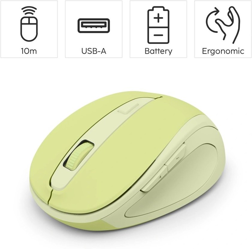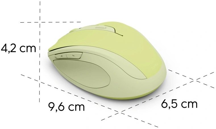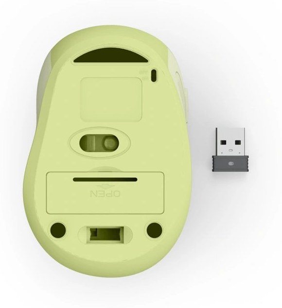myš, kancelárska, pre pravákov, USB-A bezdrôtový prijímač, optický senzor, nepodsvietená, 6 tlačidiel, tichý klik (silent click), max. citlivosť 1600DPI, zelenáZobraziť viac