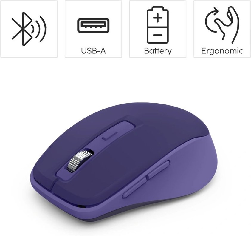- 7-tlačidlová bezdrôtová optická myš s voliteľným pripojením na tri zariadenia: 1x bezdrôtový USB prijímač a 2xBluetooth- tichá, bez zvukov pri klikaní pre nerušenú prácu