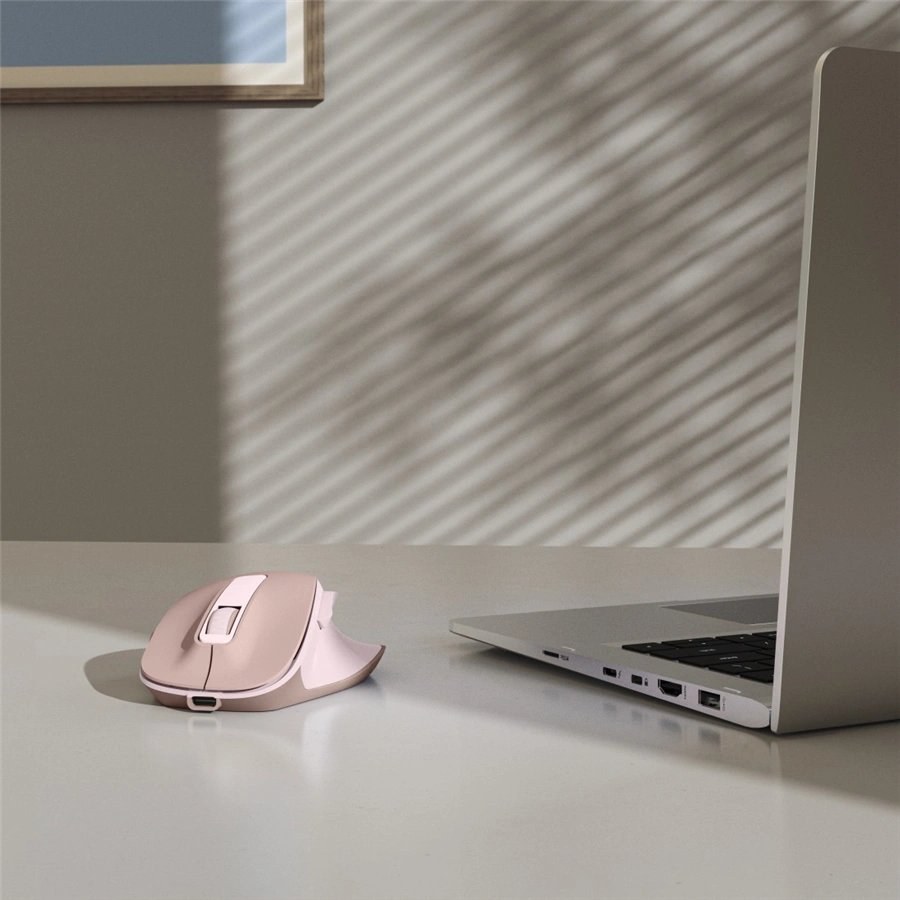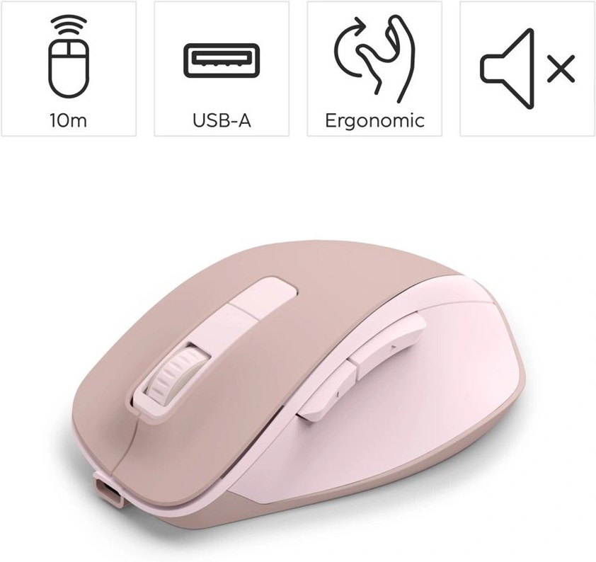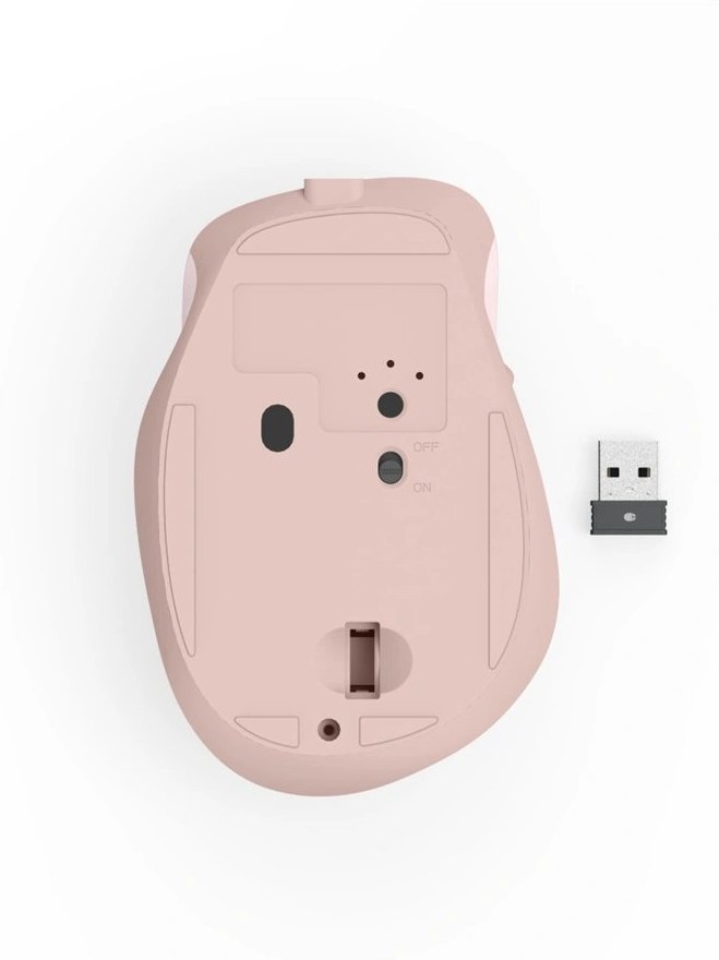 myš, kancelárska, pre pravákov, USB-A bezdrôtový prijímač, optický senzor, nepodsvietená, 6 tlačidiel, tichý klik (silent click), max. citlivosť 1600DPI, ružováZobraziť viac