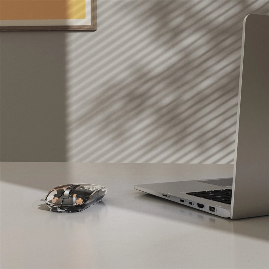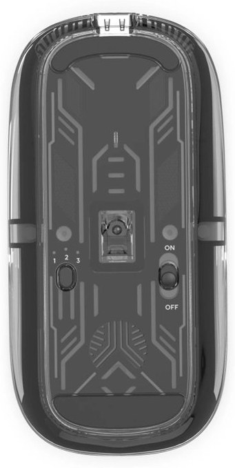 - 6-tlačidlová bezdrôtová optická myš s voliteľným pripojením na tri zariadenia: 1x bezdrôtový USB prijímač a 2xBluetooth- atraktívne prevedenie s priehľadným horným krytom