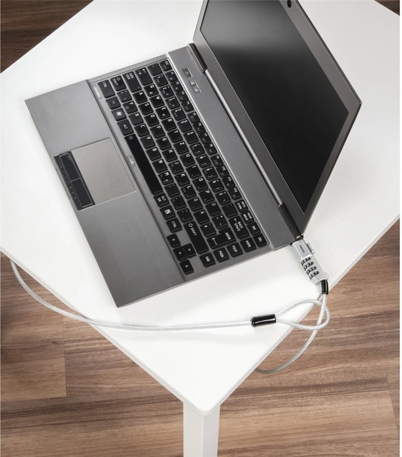 - jednoduché použitie, zámku na notebook možno flexibilne pripevniť, napr. k nábytku
