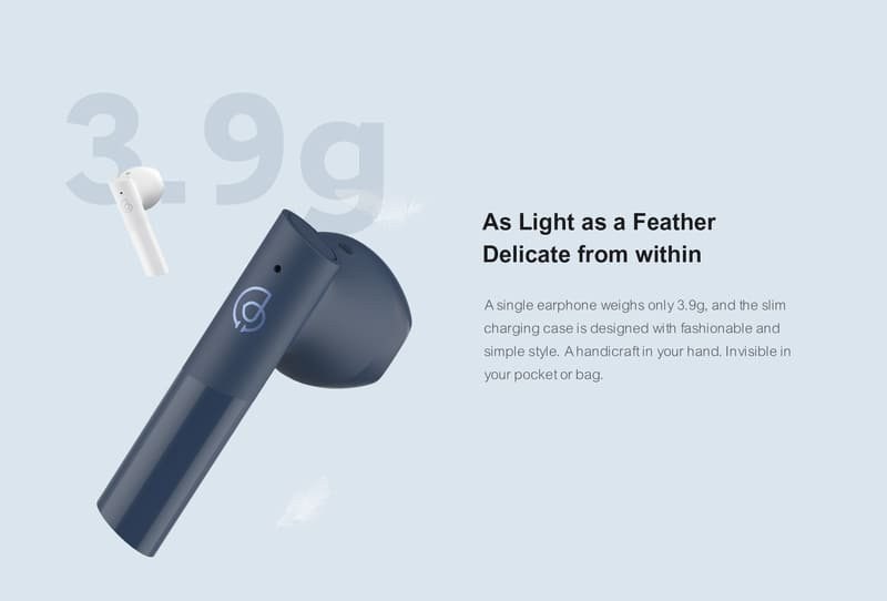 Jediné slúchadlo váži iba 3.9 g a tenké nabíjacie puzdro je navrhnuté v módnom a jednoduchom štýle. Vo vrecku alebo taške neviditeľný.Bez obmedzení