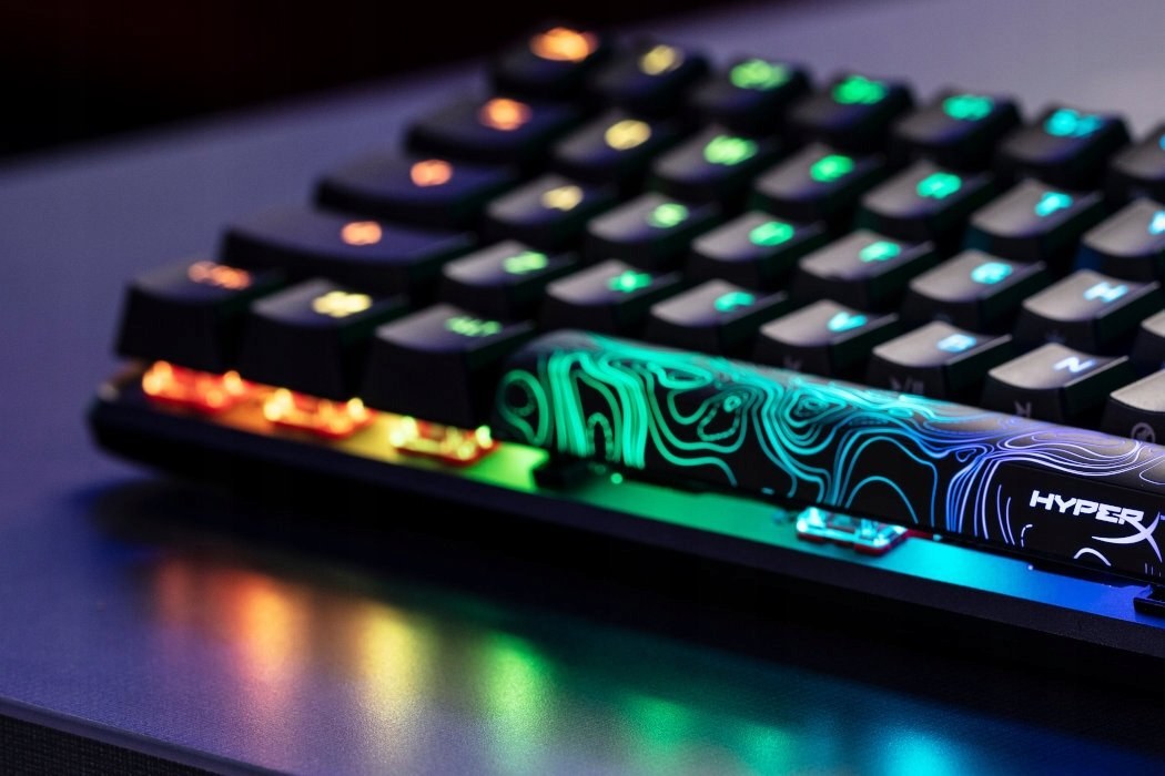 mechanické spínače HyperX Aqua, RGB podsvietenie, dve úrovne náklonu klávesnice