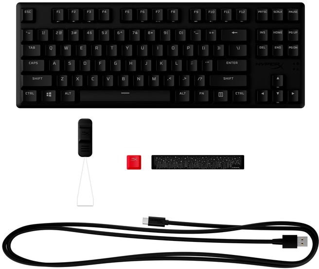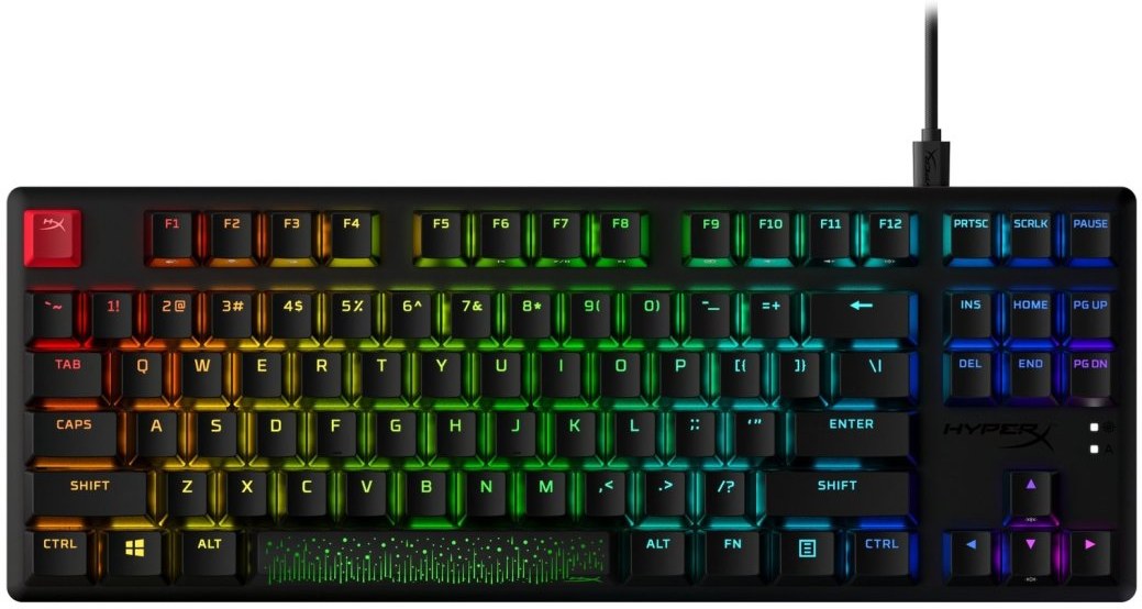 zľavamechanické spínače HyperX Red, RGB podsvietenie, dve úrovne náklonu klávesnice, PBT klávesy