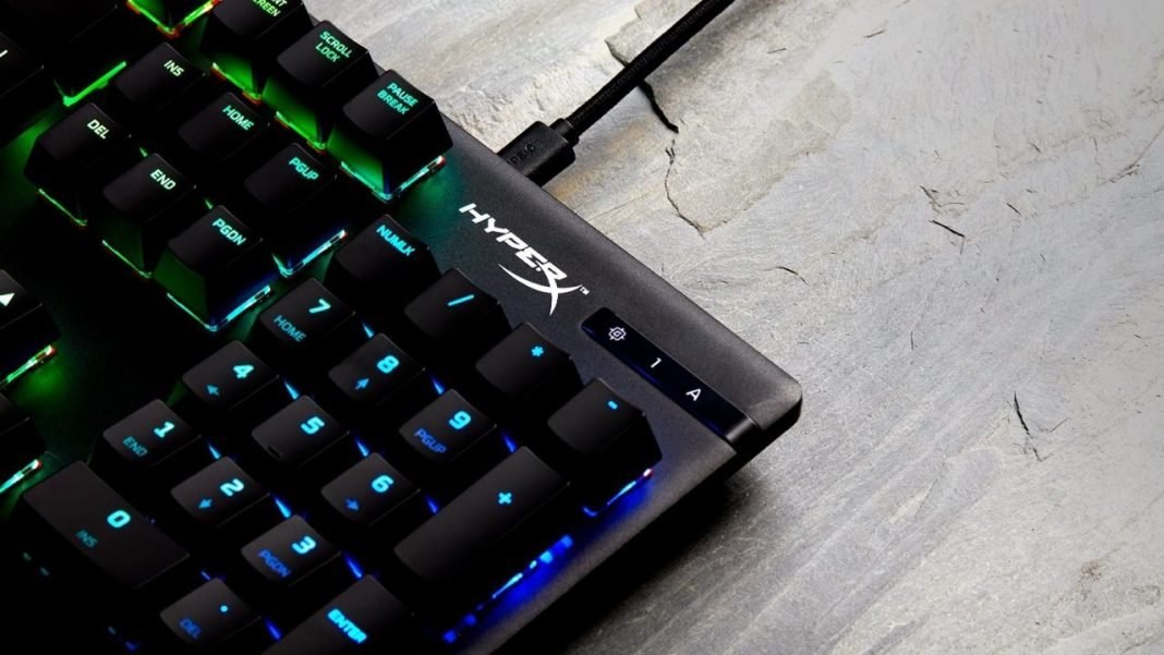mechanické spínače HyperX Aqua, RGB podsvietenie, dve úrovne náklonu klávesnice