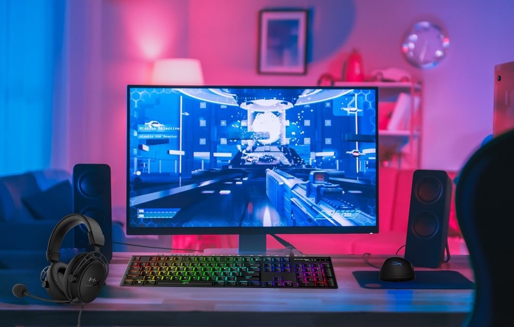 mechanické spínače HyperX, RGB podsvietenie, tri úrovne náklonu klávesnice