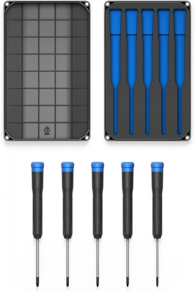 Nová rada skrutkovačov Pro Tech spoločnosti iFixit prináša náradie s pevným ostrím, vybavené ergonomickou vrúbkovanou pogumovanou rukoväťou s otočnou hornou časťou. Každý hrot presného skrutkovača je potiahnutý oxidom čiernym, takže sa na neho zavesia malé skrutky s oceľovou rukoväťou.
