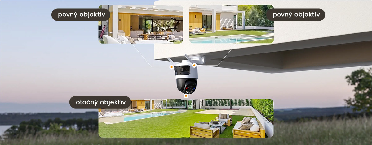 | Kamera ideálna pre veľké dvory, firmy, parkoviská, vstupy - keď chceš maximálny prehľad aj detail súčasne. |
