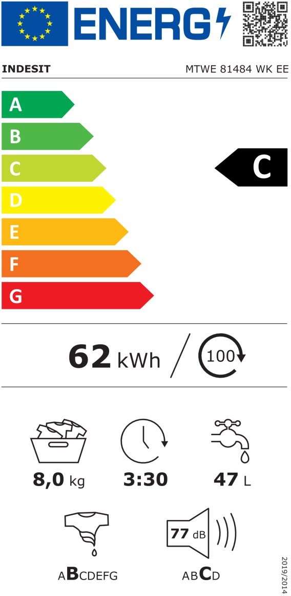 Indesit MTWE 81484 WK EE, spredu plnená práčka, 8kg