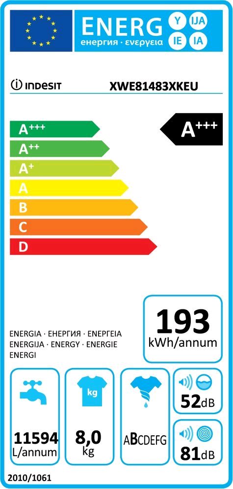 En. spotr. bavlna 60 ° C plná náplň: 1,044 kW / hod